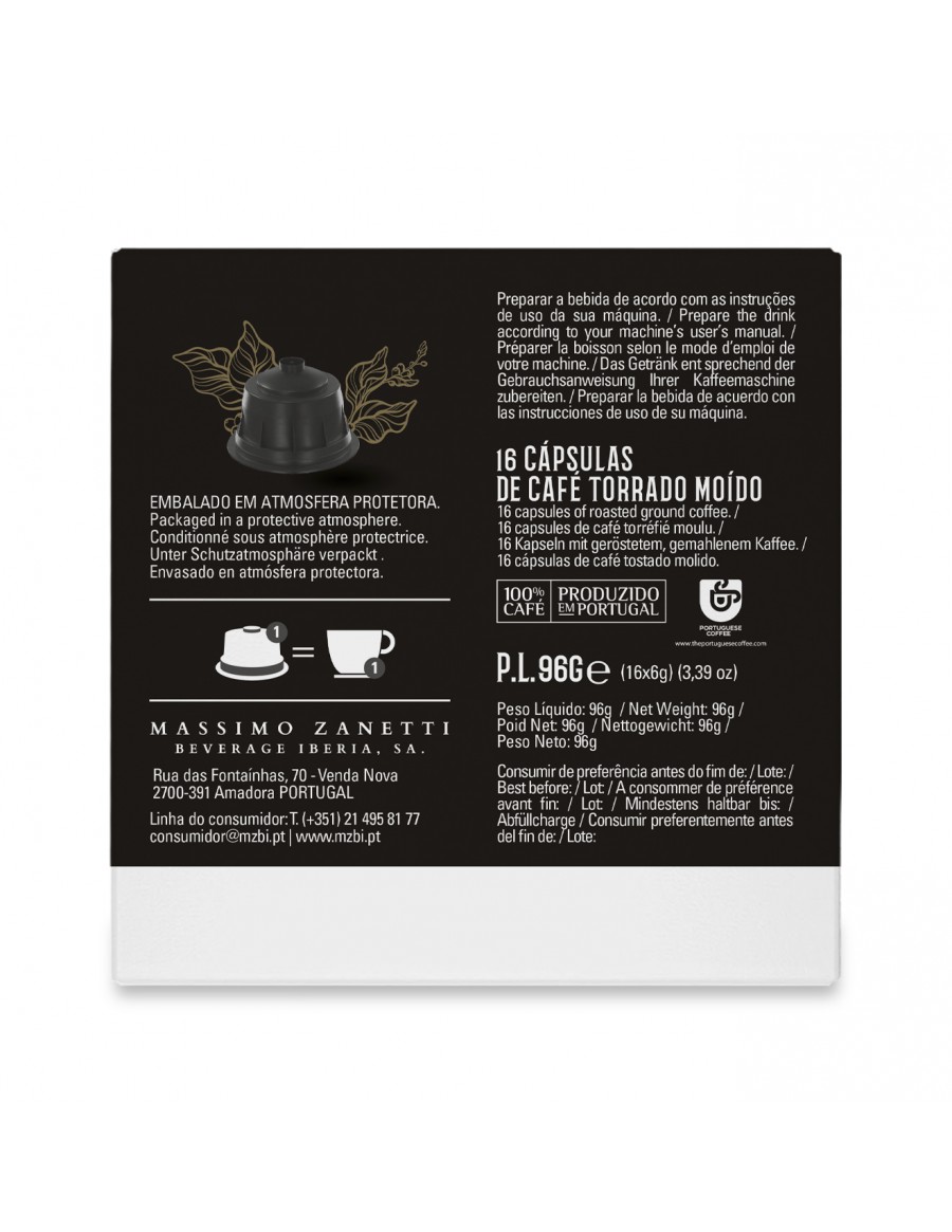 Cápsulas compatíveis com o sistema Nespresso® *Marca registada em nome de empresa não relacionada com a Massimo Zanetti Beverage Iberia, S.A.